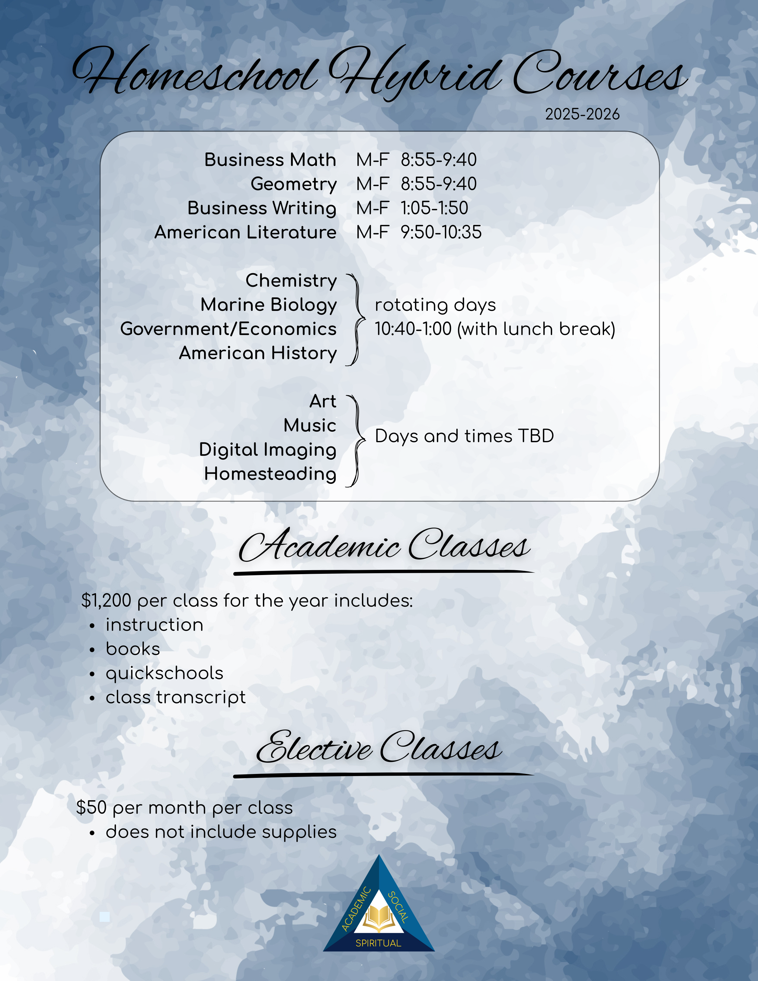 PBCS firmly believes that education begins in the home. Though we would love to have as many students possible full-time at Pen Bay, we strongly support home school families. We offer opportunities for home school students to participate in classes listed below.